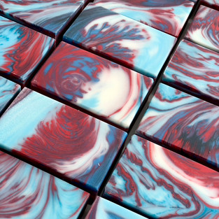 My entry soap "VOLCANO KISS" was comprised 3 different layers of my favorite color combo of red, white and blues inspired by the STRENGTH of AMERICA this past year 🇺🇸. Trial by Fire Red from @nurturessoap is vibrant and a true red. My color palette also consisted of Caribbean Blue, Siren's Song and Brilliant Blue, TD and AC.